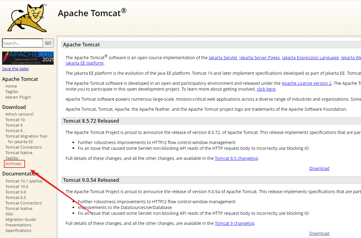 打开tomcat官网